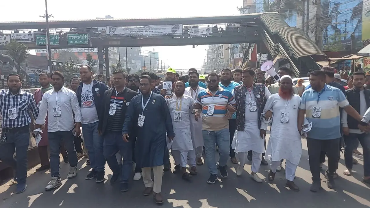 সাভারে ঢাকা ১৯ আসনে ধানের শীষে প্রতীকে নির্বাচনী প্রচারণা করেন সাভার পৌর শ্রমিক দলের নেতাকর্মীরা।